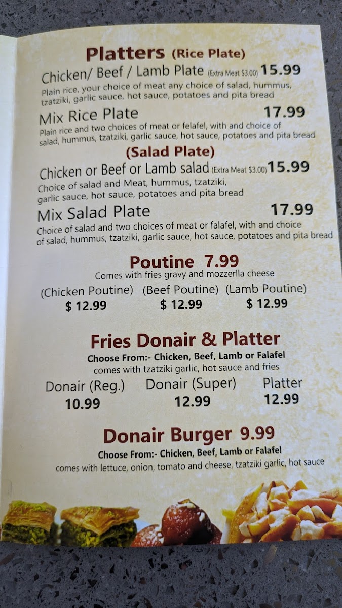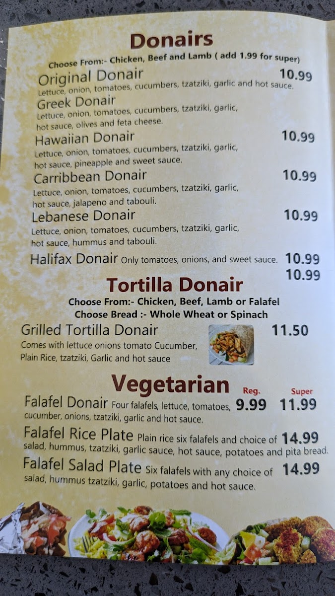 Quick, affordable, healthy, filling meal! Tasty Donairs, my favourite is the Lebanese Beef donair. Service is always friendly, never too loud inside. Great local spot, one of my favourites.